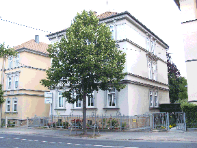 Das Geburtshaus von Hannah Höch in Gotha/Thüringen Das damalige Haus der Familie Höch, wie es heute noch in Gotha steht, befand sich in der damaligen Kaiserstraße. Hier wohnte Friedrich Höch mit seiner Familie. Hannah Höch ist hier aufgewachsen. Ihr Vater war Generalagent einer Versicherung, ihre Mutter Rosa, die gebildet war und viele künstlerische Interessen besaß, gab dies an ihre Kinder weiter. Das Ehepaar Höch hatte 5 Kinder, Hannah war die Älteste, geboren 1889. Schon sehr früh fertigte die Mutter mit ihren Kindern Klebebilder an und lehrte sie künstlerische Techniken. So mag Hannah Höch, die spätere Meisterin der Photo-Collage, hier ihre ersten bildnerischen Erlebnisse gehabt haben und Fertigkeiten erworben haben. Hinter Höchs Haus befand sich ein kleiner Park in dem es blühte und grünte. Mit dem Vater, der dort seine Rosen pflegte, lernte sie bereits mit 7 Jahren Rosen zu veredeln. Den Park gibt es nicht mehr, aber das Geburtshaus von Hannah Höch wird von den jetzigen Besitzern wunderbar erhalten. |